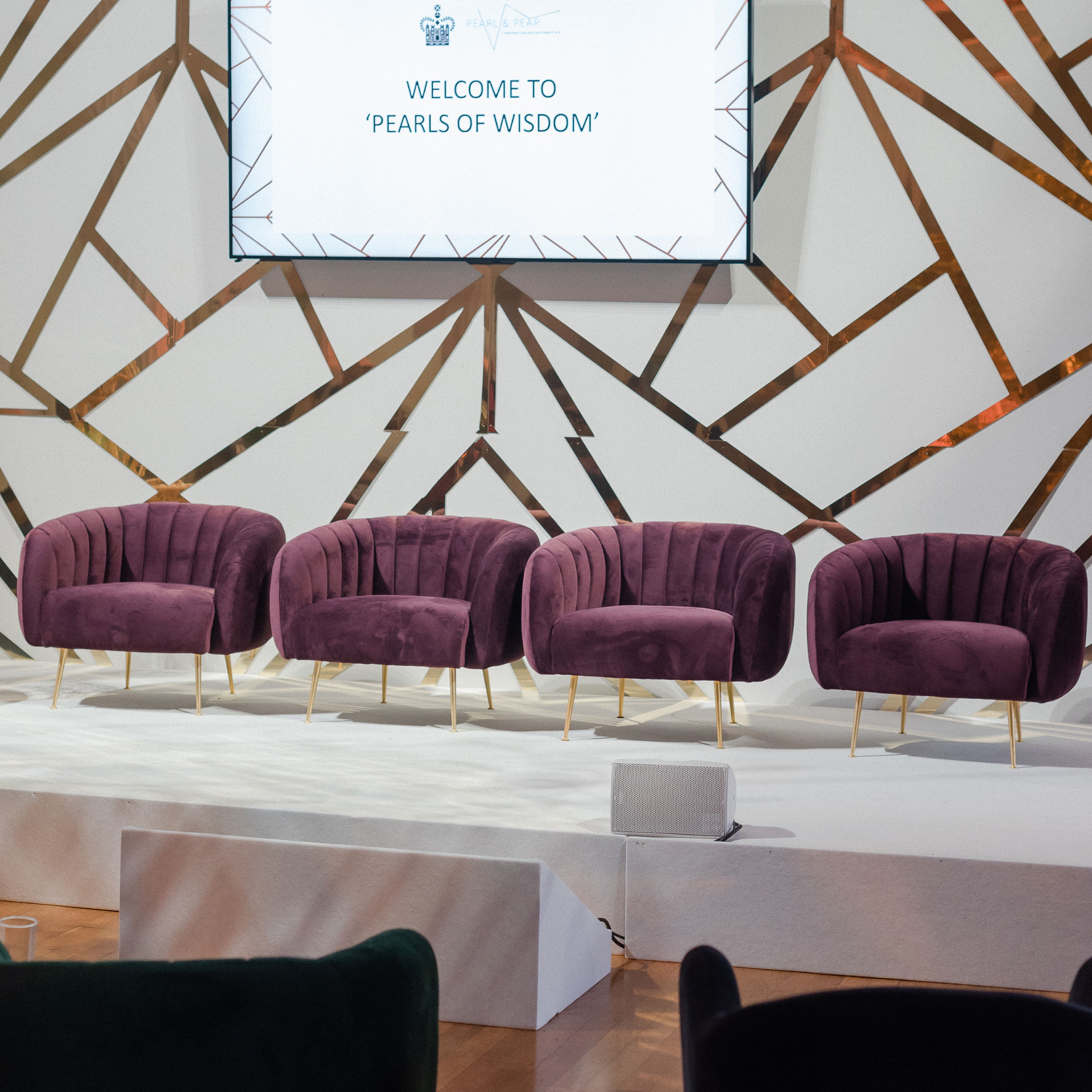 Panel seating for talks, live events and award ceremonies. Design-led armchairs for speaker stages, panel discussions and interview setups.